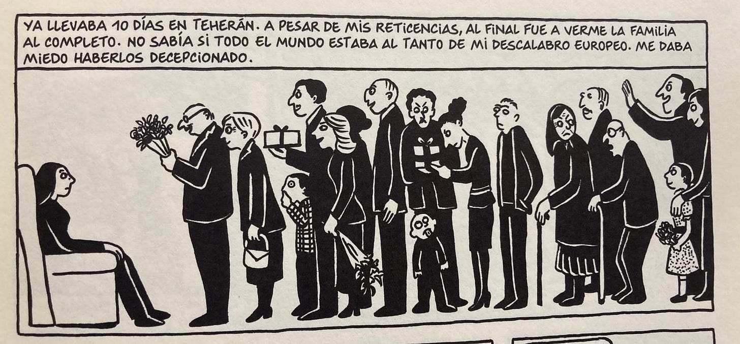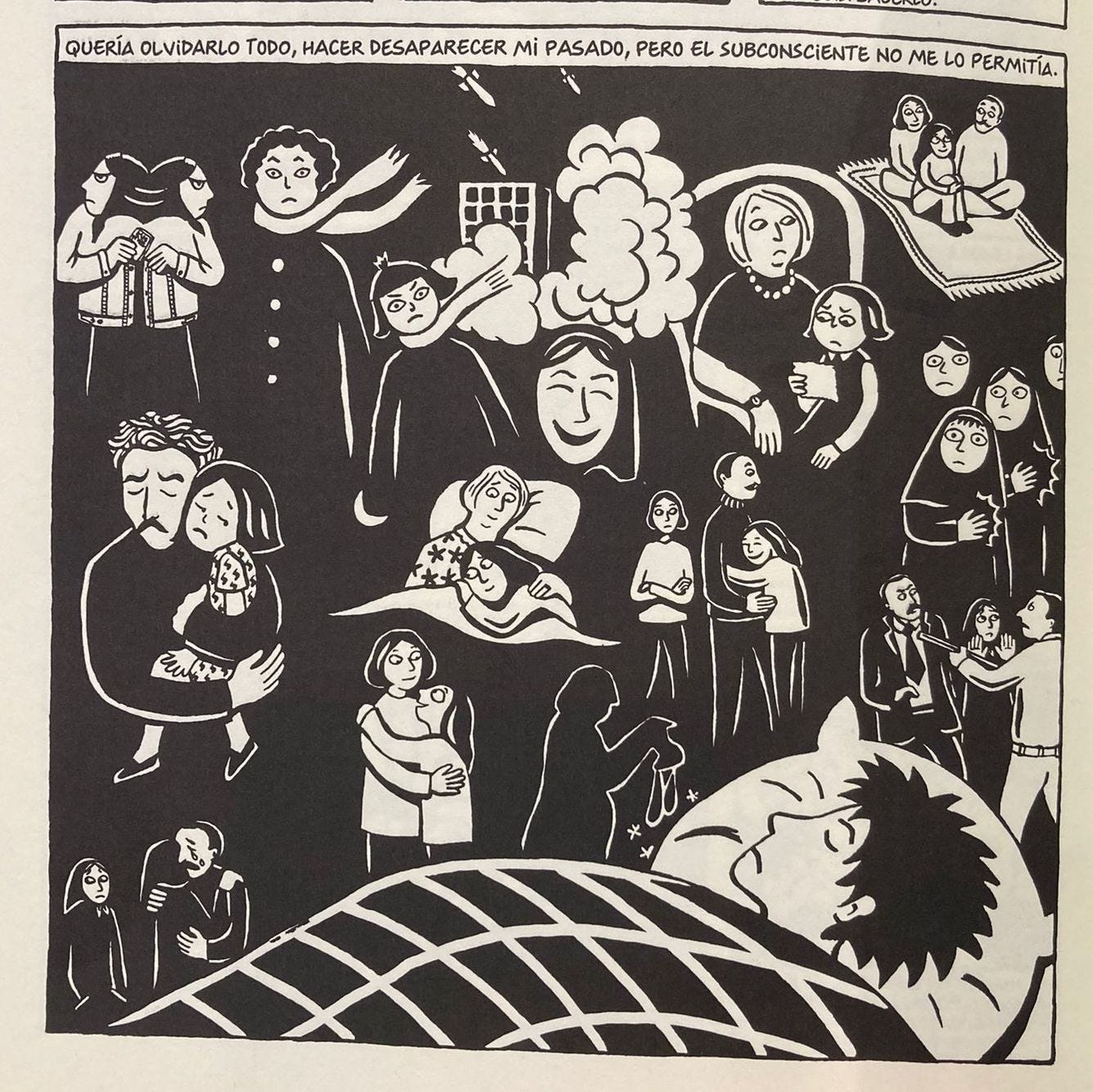 La lectura de esta novela gráfica nos remite a muchos de los temas que abordamos en el curso de Psicología de la Migración. La mirada de Marji (así llaman a Marjane en su entorno familiar) está atravesada por la experiencia migratoria, por los desarraigos, las contradicciones culturales y el conflicto entre pertenencias.