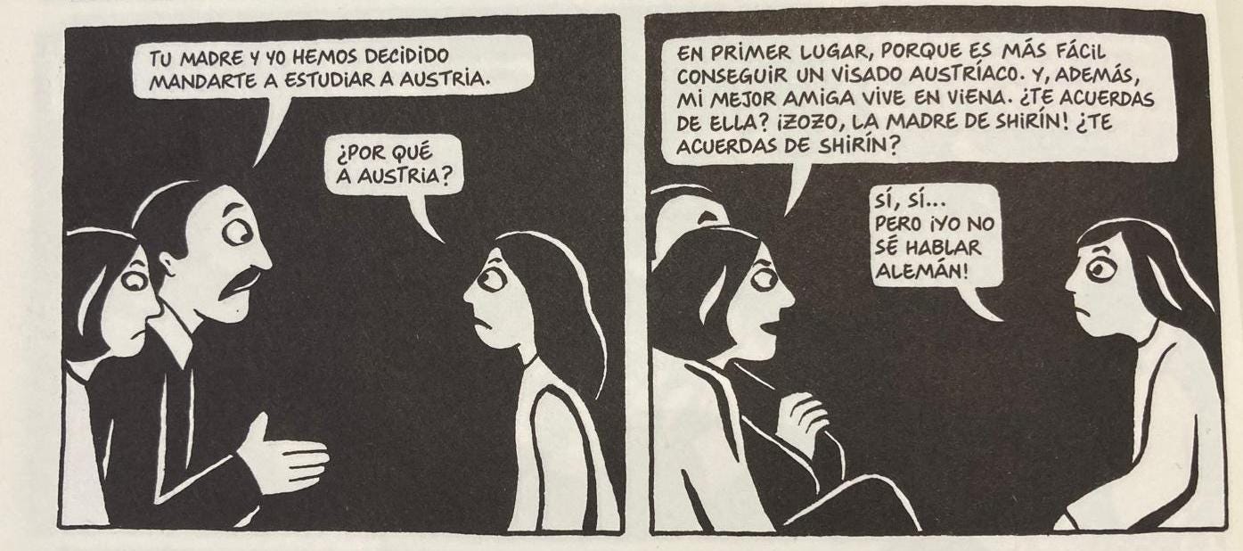 Ya en Austria, Marji enfrenta el choque cultural y las dificultades lingüísticas que conlleva adaptarse a un nuevo entorno.